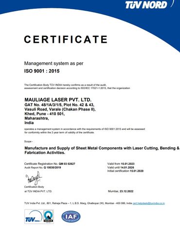 We at Mauliage Laser Pvt Ltd. are Committed to Manufacture and Supply Sheet metal Components with Laser Cutting, Bending, and fabrication activity that meets expectation of our interested parties.