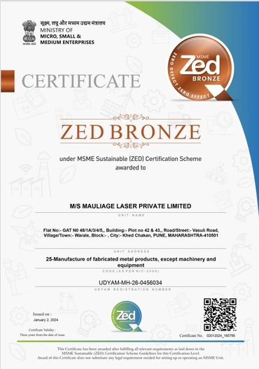 We are an ISO 9001 : 2015 Certified company by TUV Nord & also hold a ZED certificate